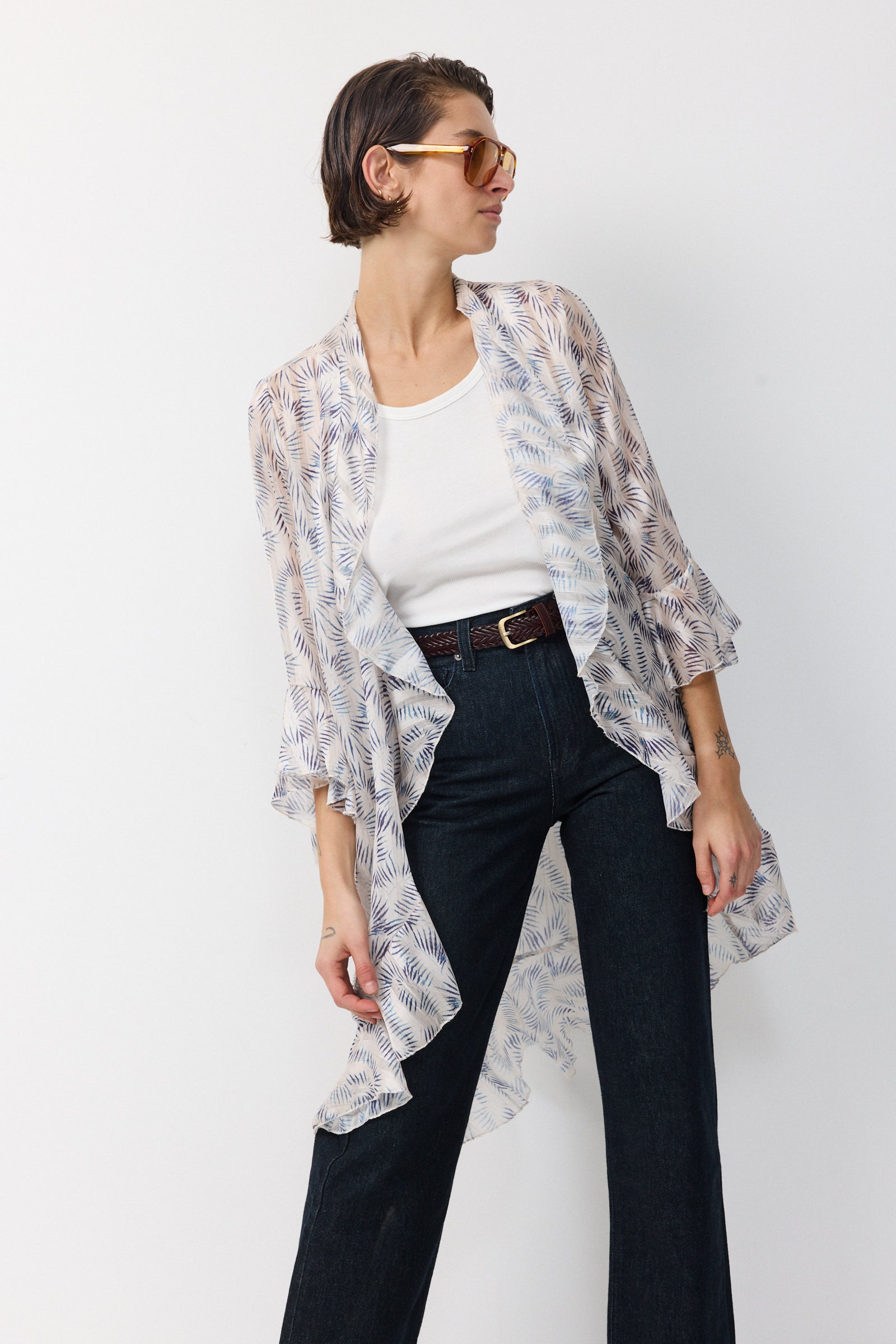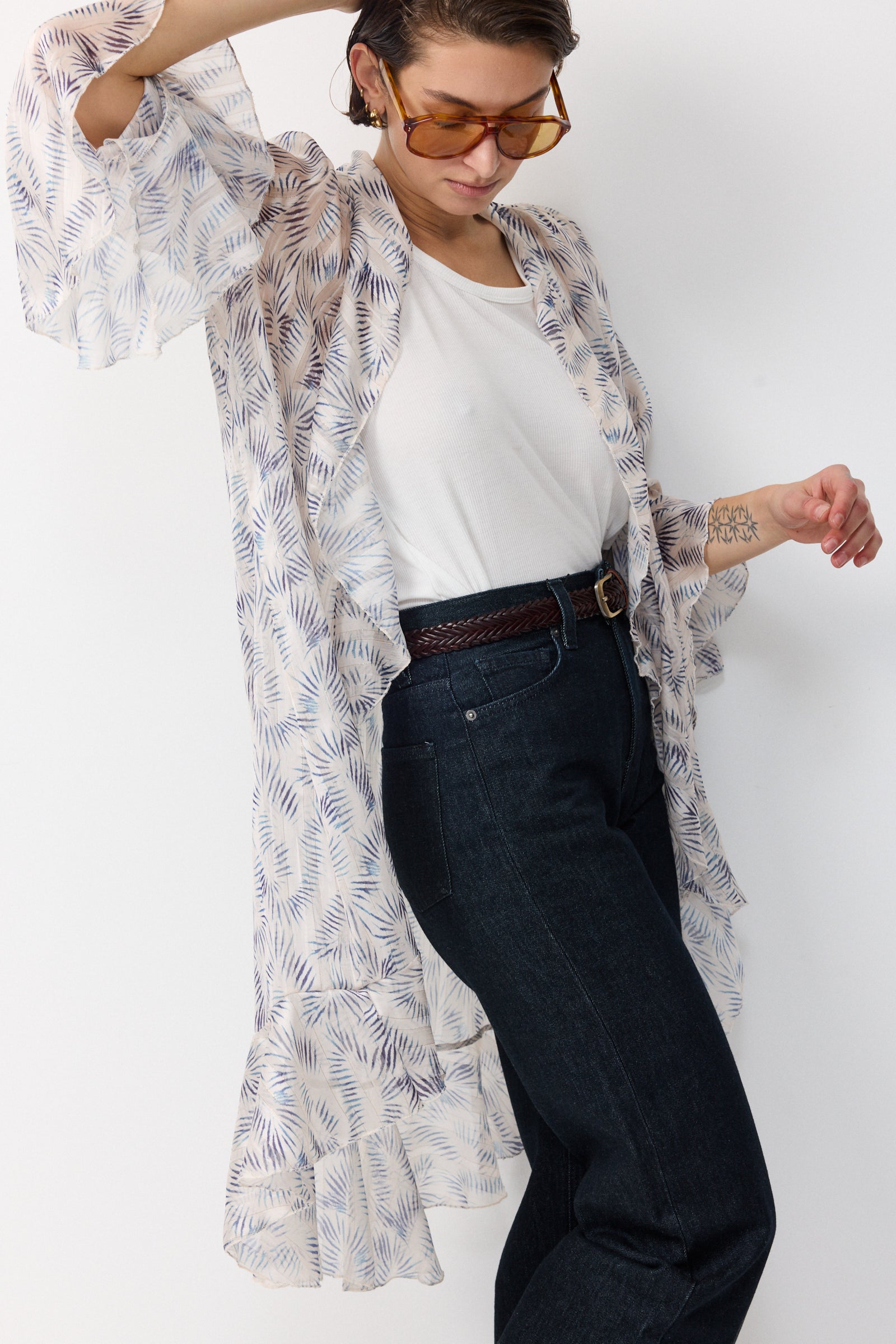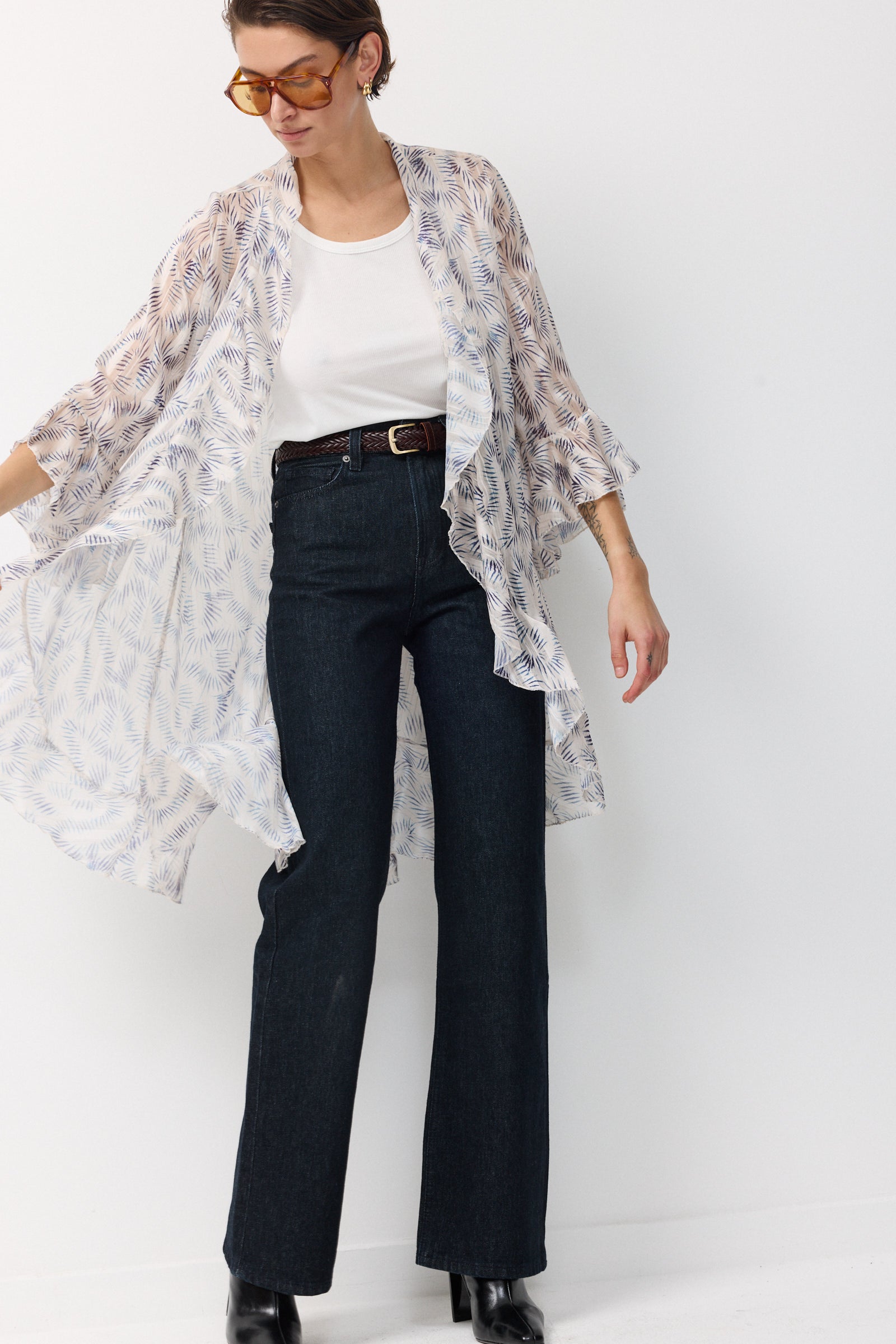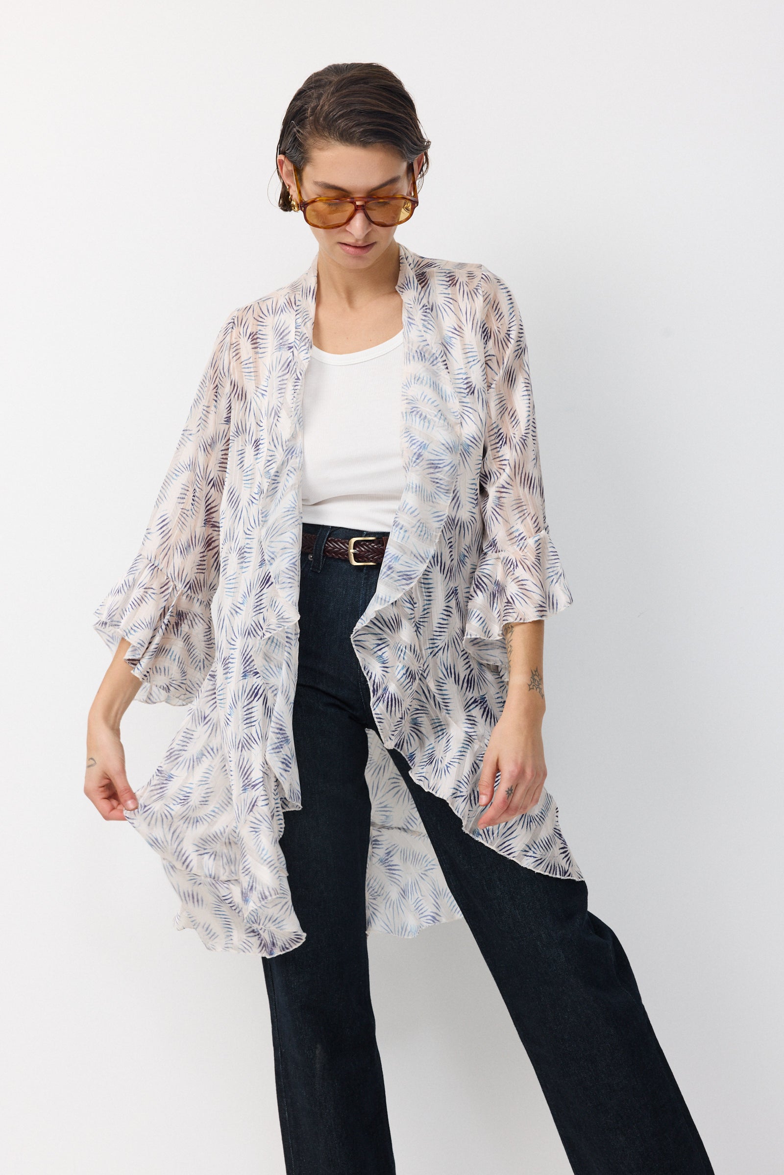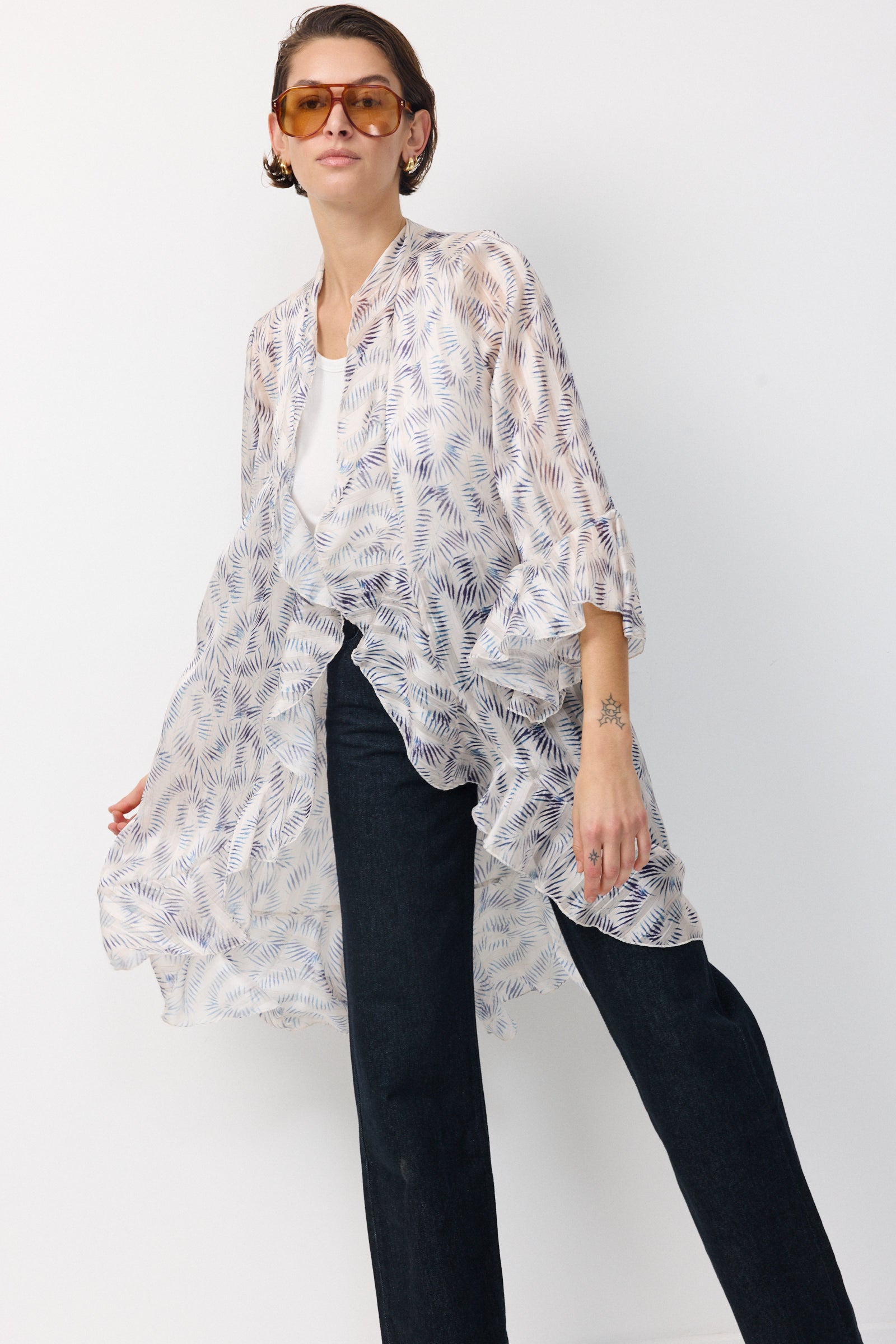 עליונית שיפון קלילה וחצי שקופה שופעת בד וגזרת וולאנים היוצרים מראה של ריחוף ותנועה מיוחדת של האריג