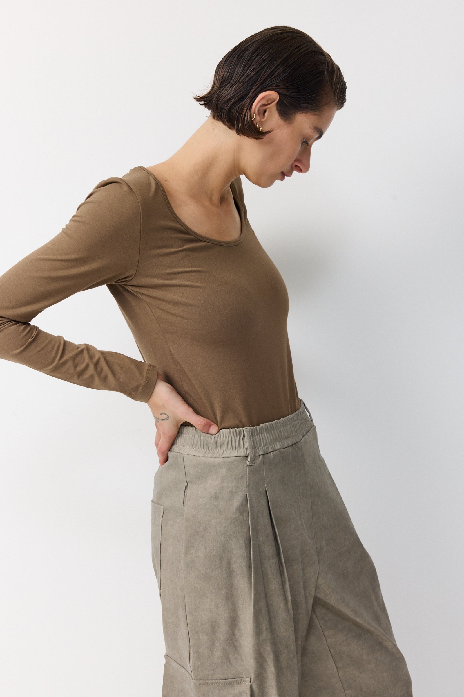 בעלת מחשוף עגול מחמיא שאינו עמוק מידי