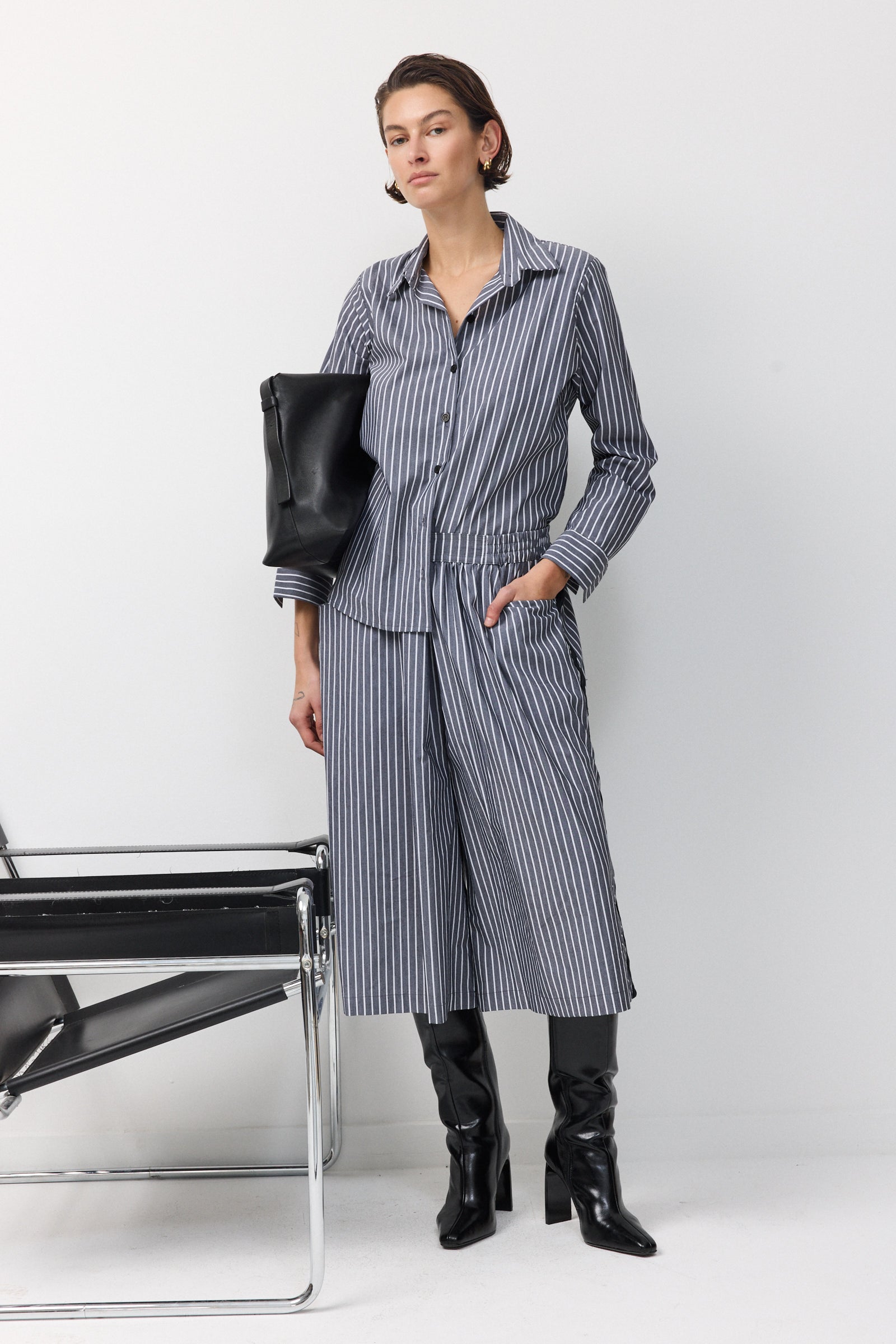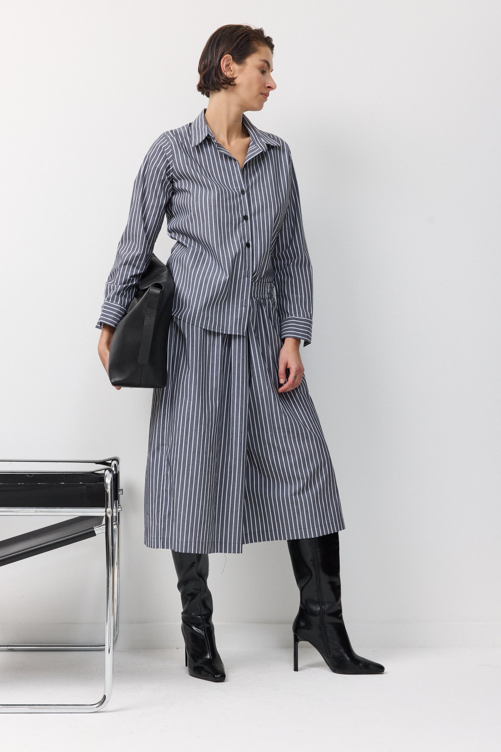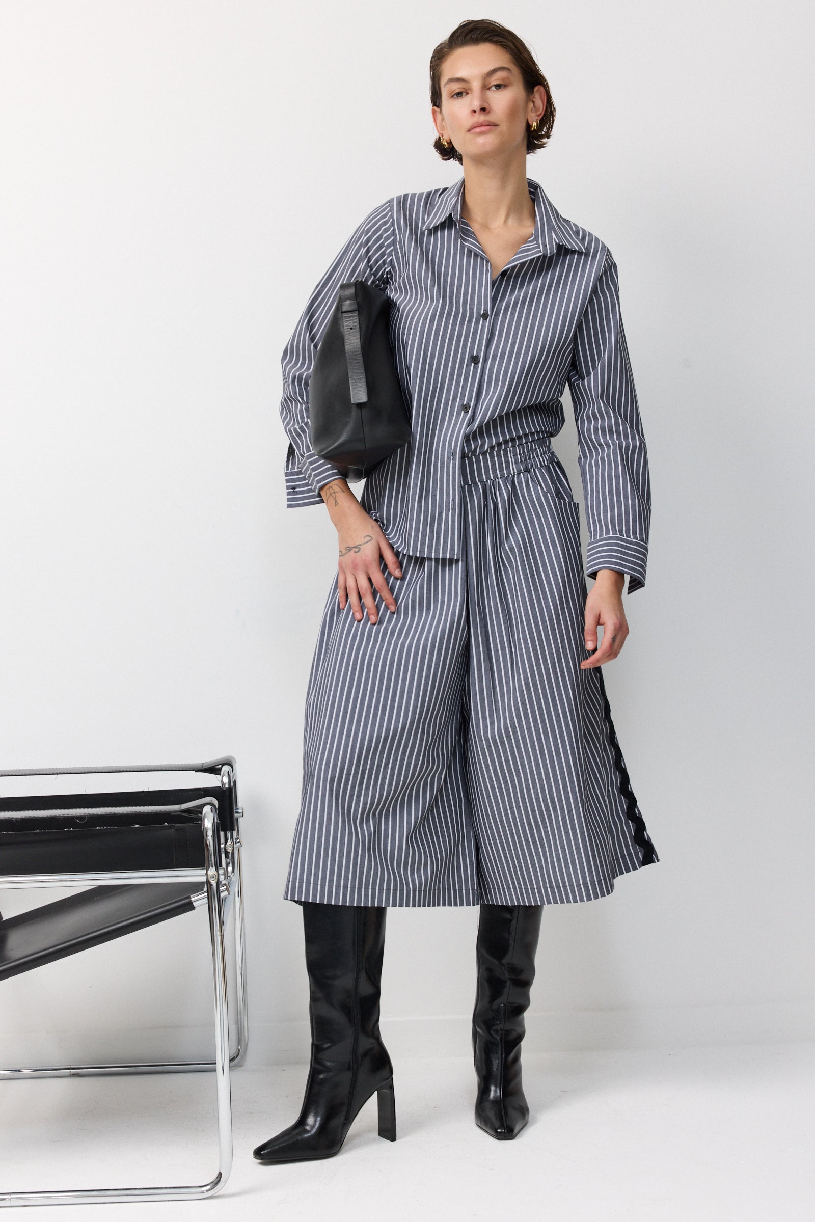 בעלת פסים שחור/אפור בשילוב פס לבן מעט דק יותר