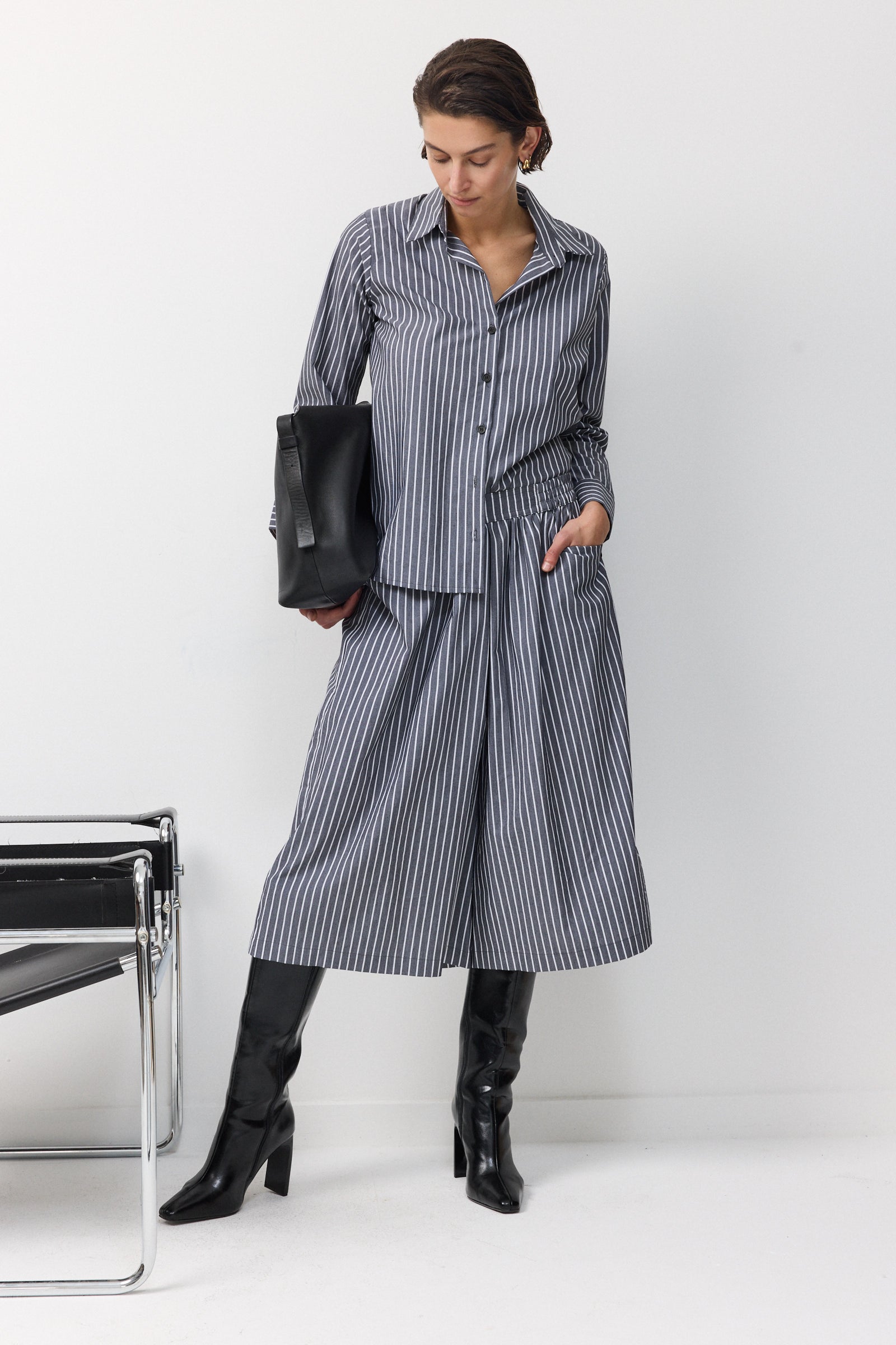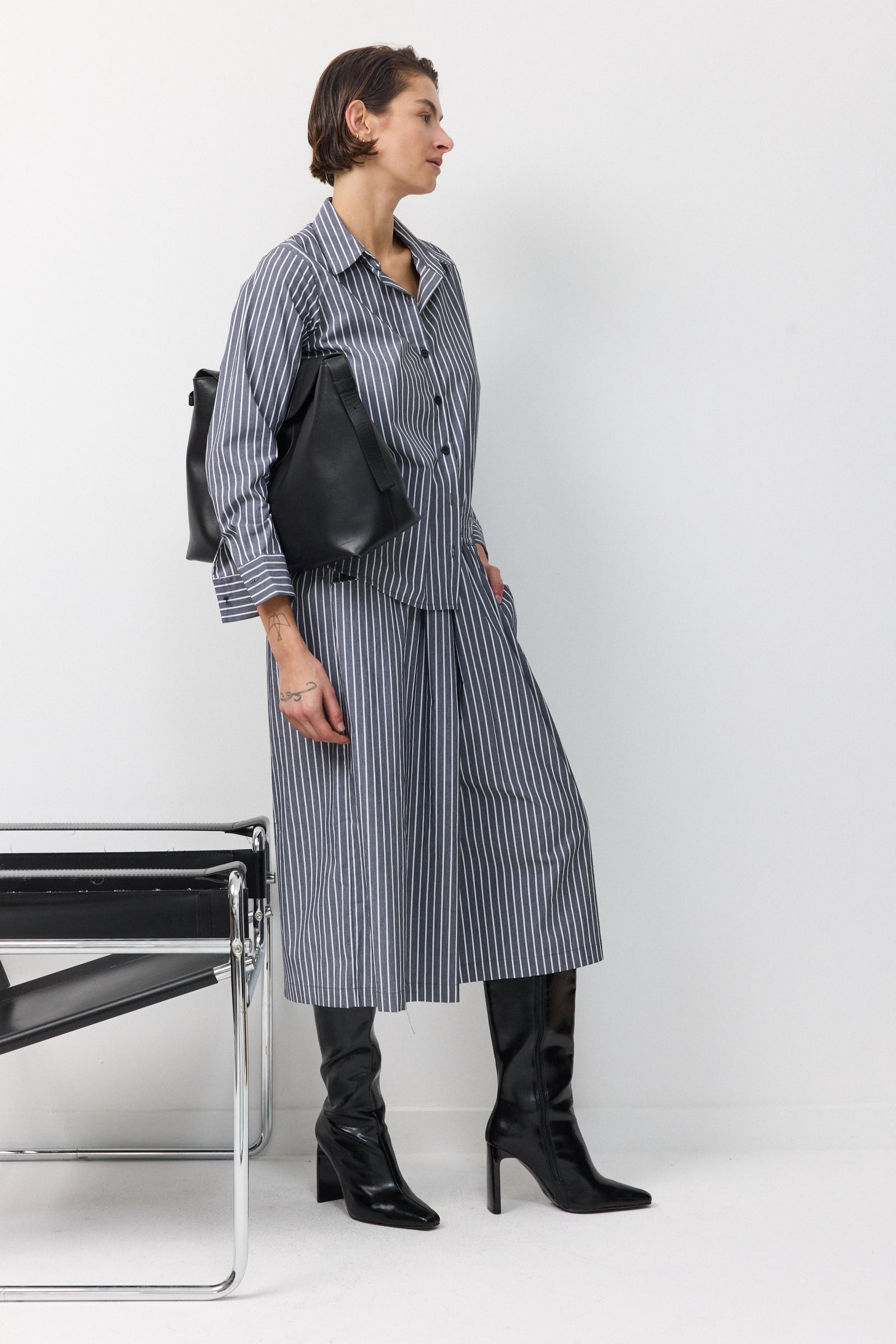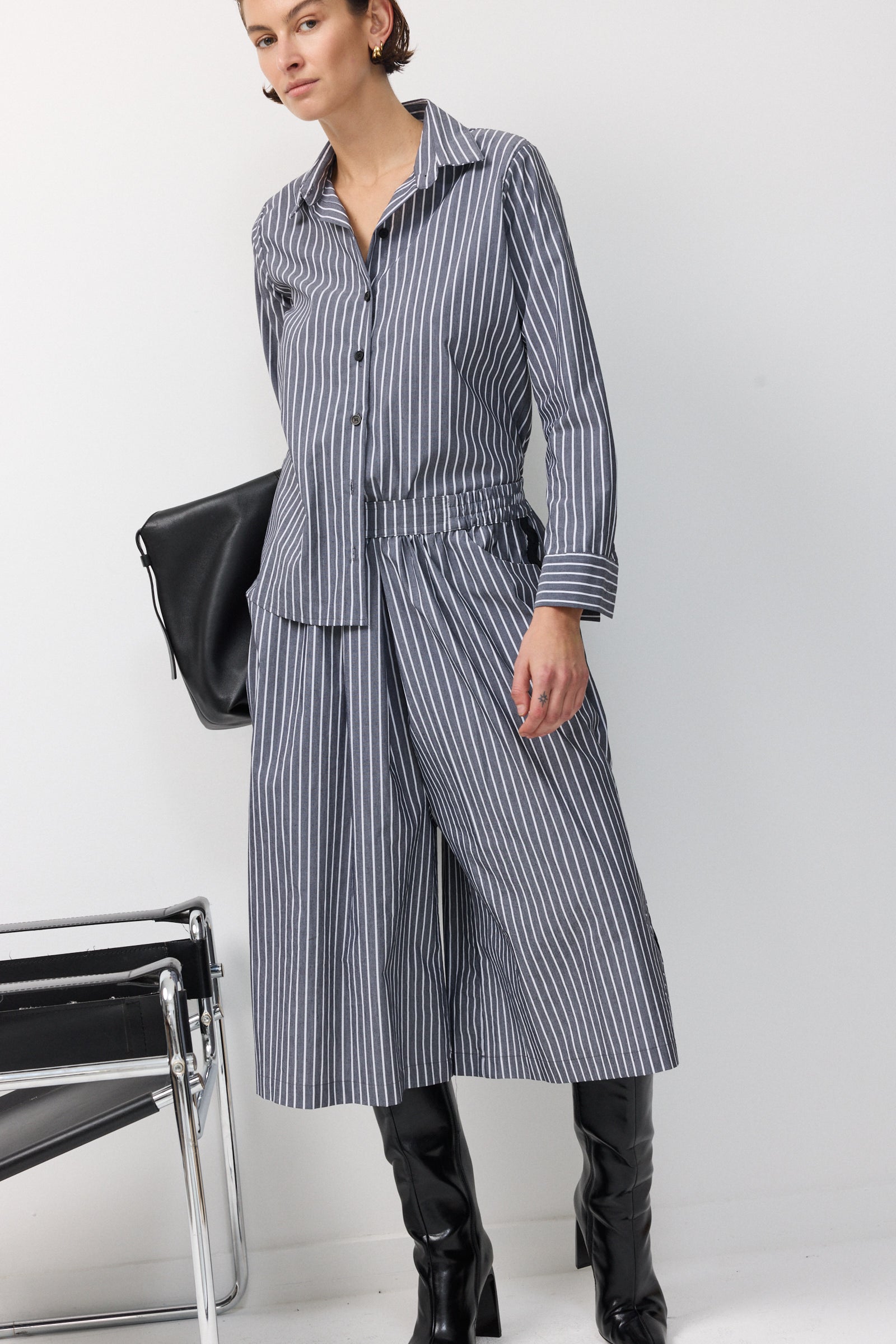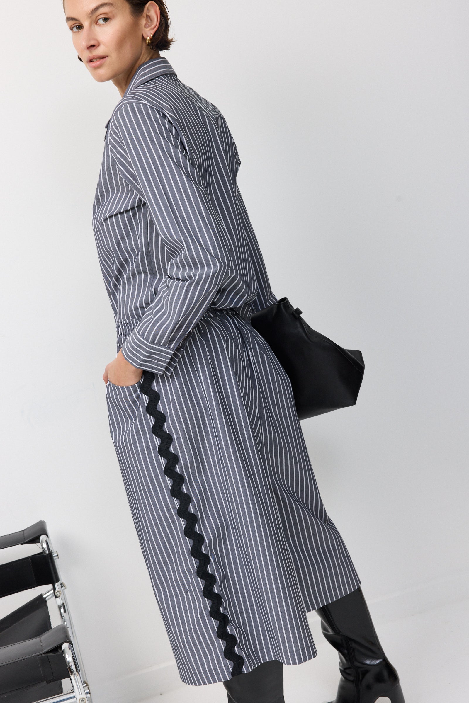 בעלת פסים שחור/אפור בשילוב פס לבן מעט דק יותר