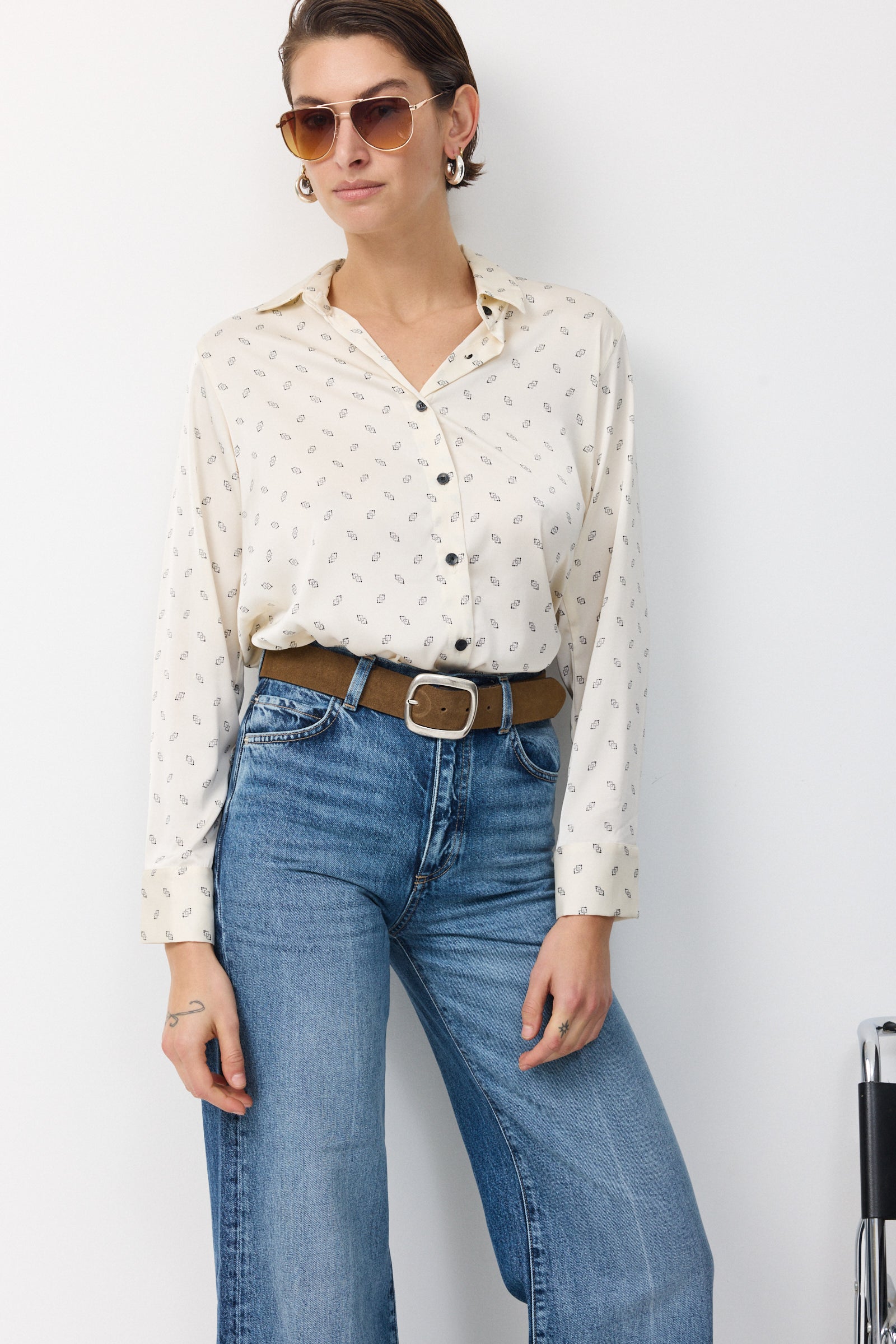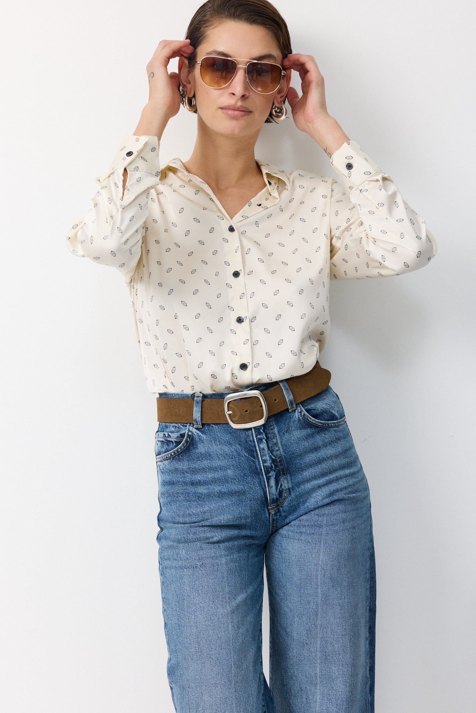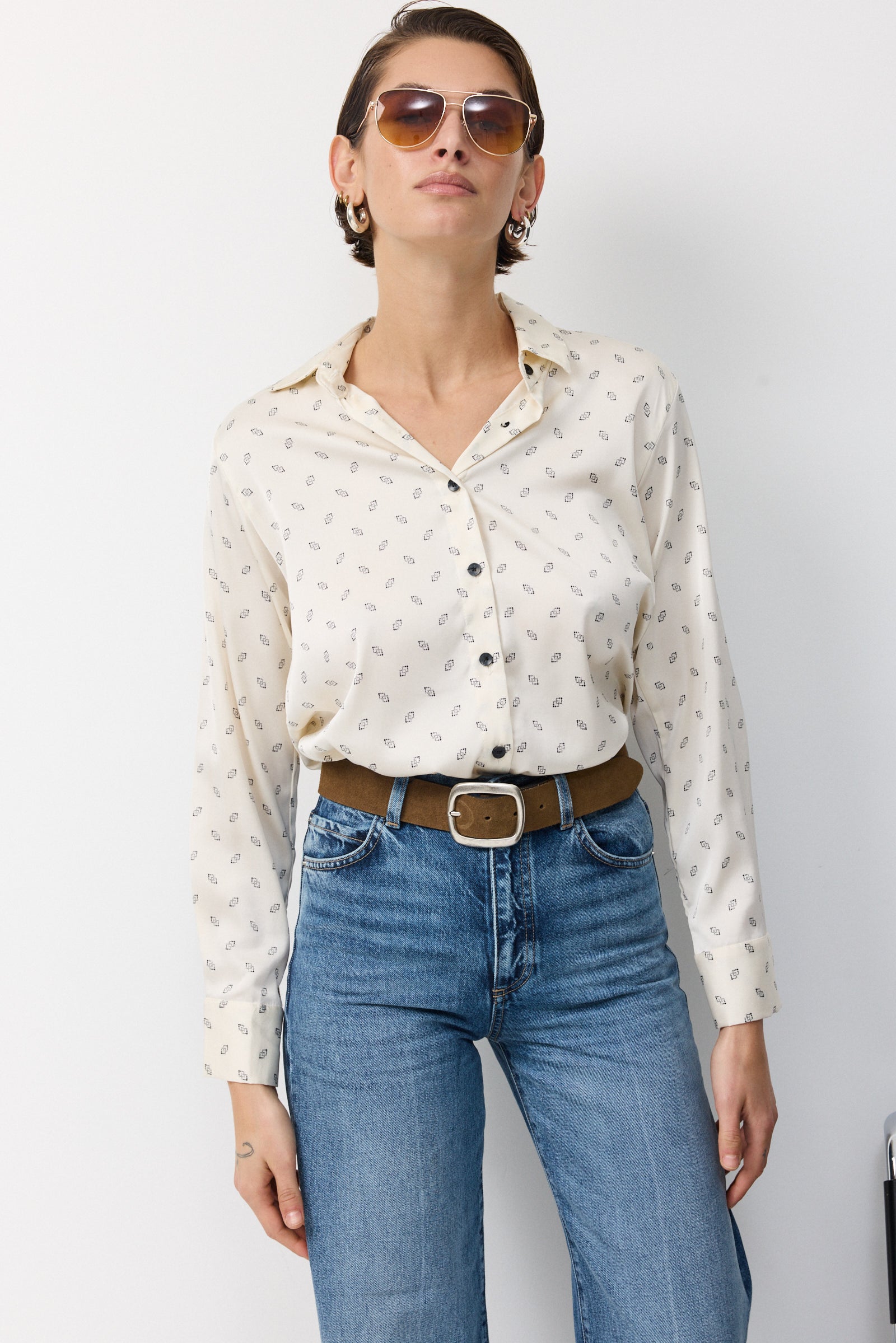 חולצת צווארון וכפתרה עשויה אריג סאטן -משי