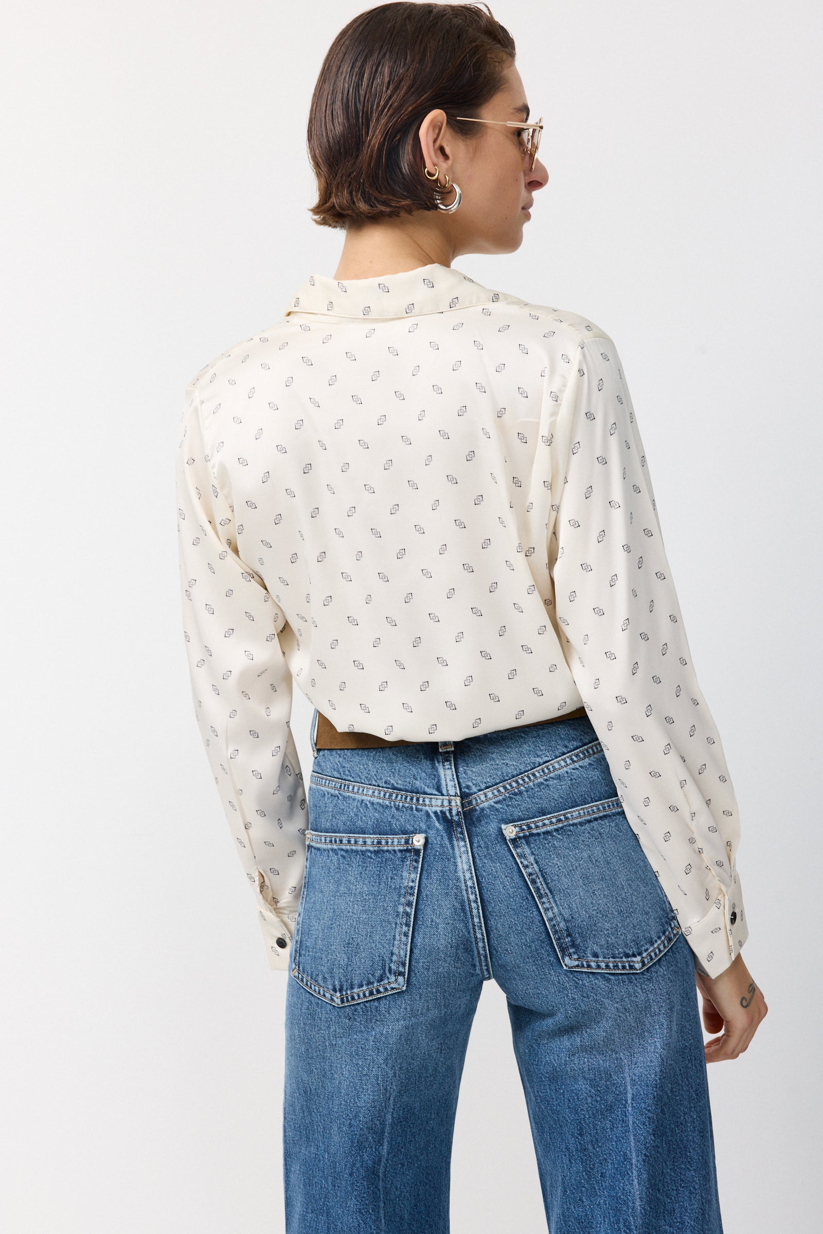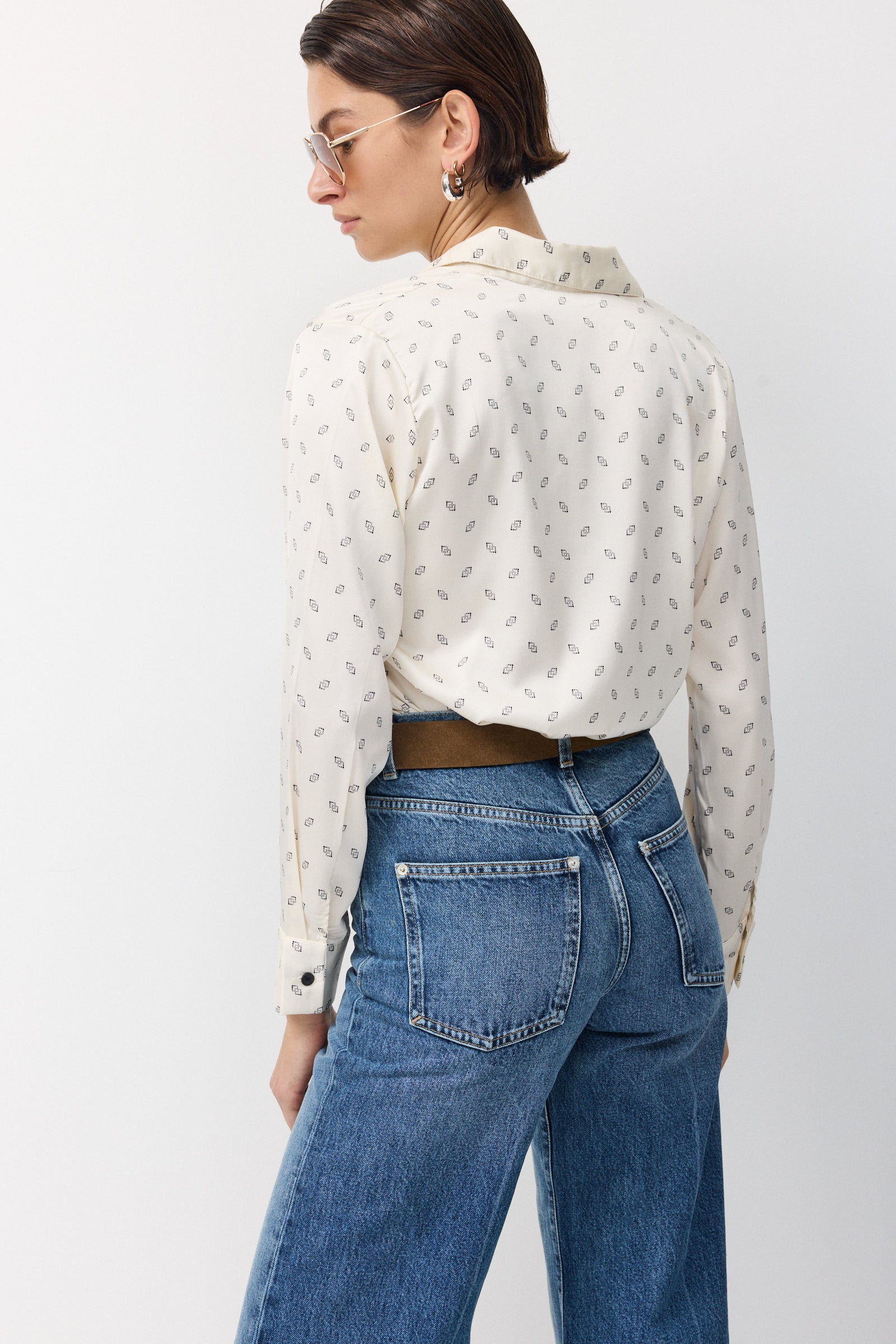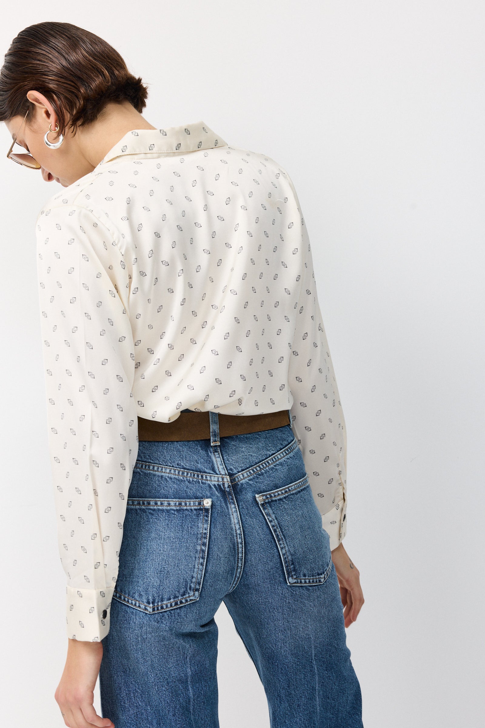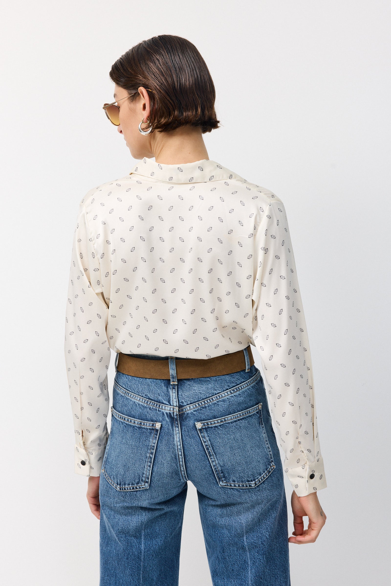 חולצת צווארון וכפתרה עשויה אריג סאטן -משי