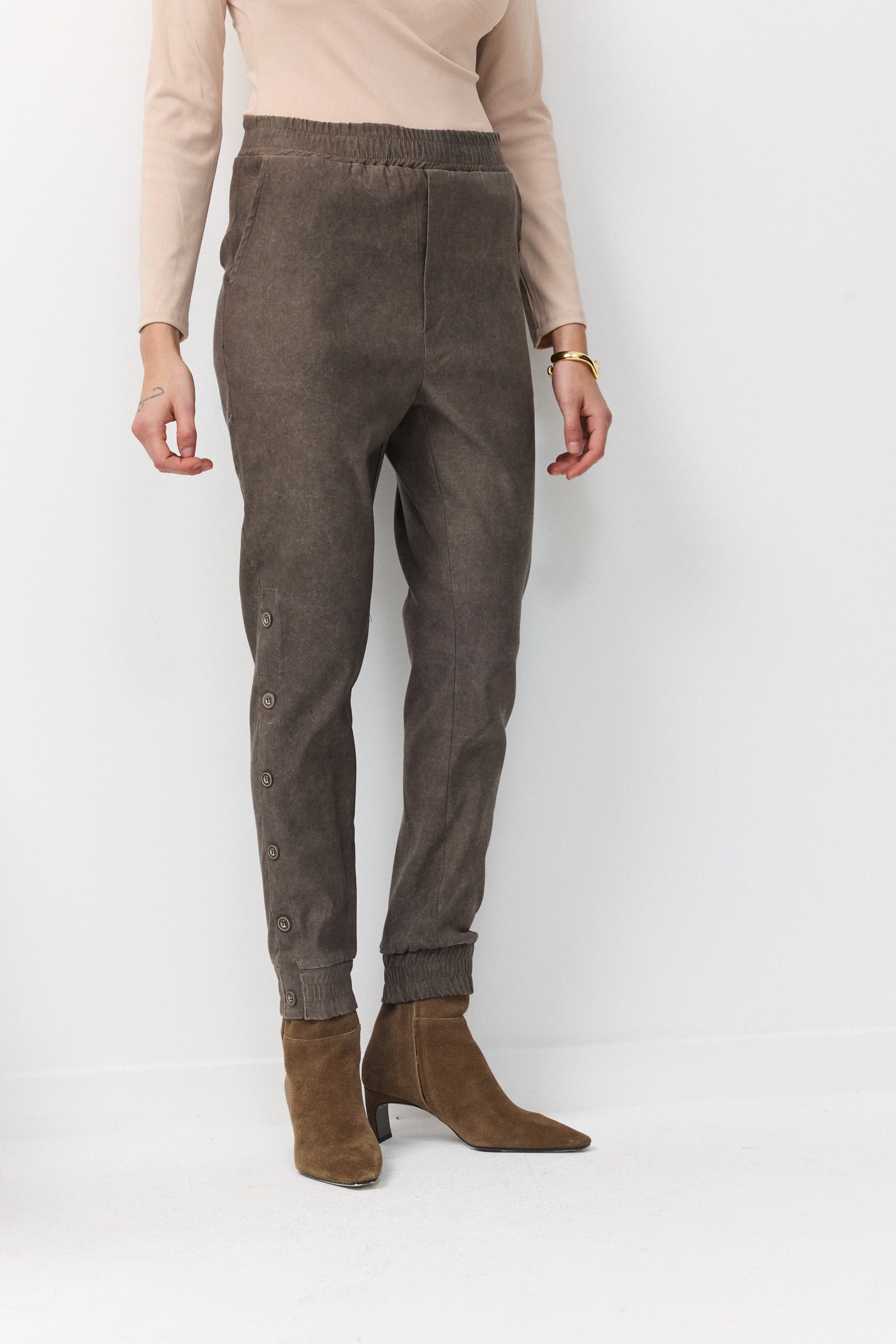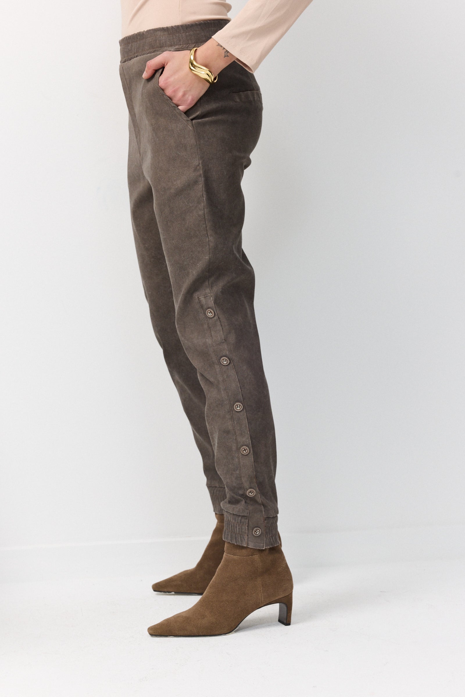 ALONA BUTTONS PANTS BROWN-STONE