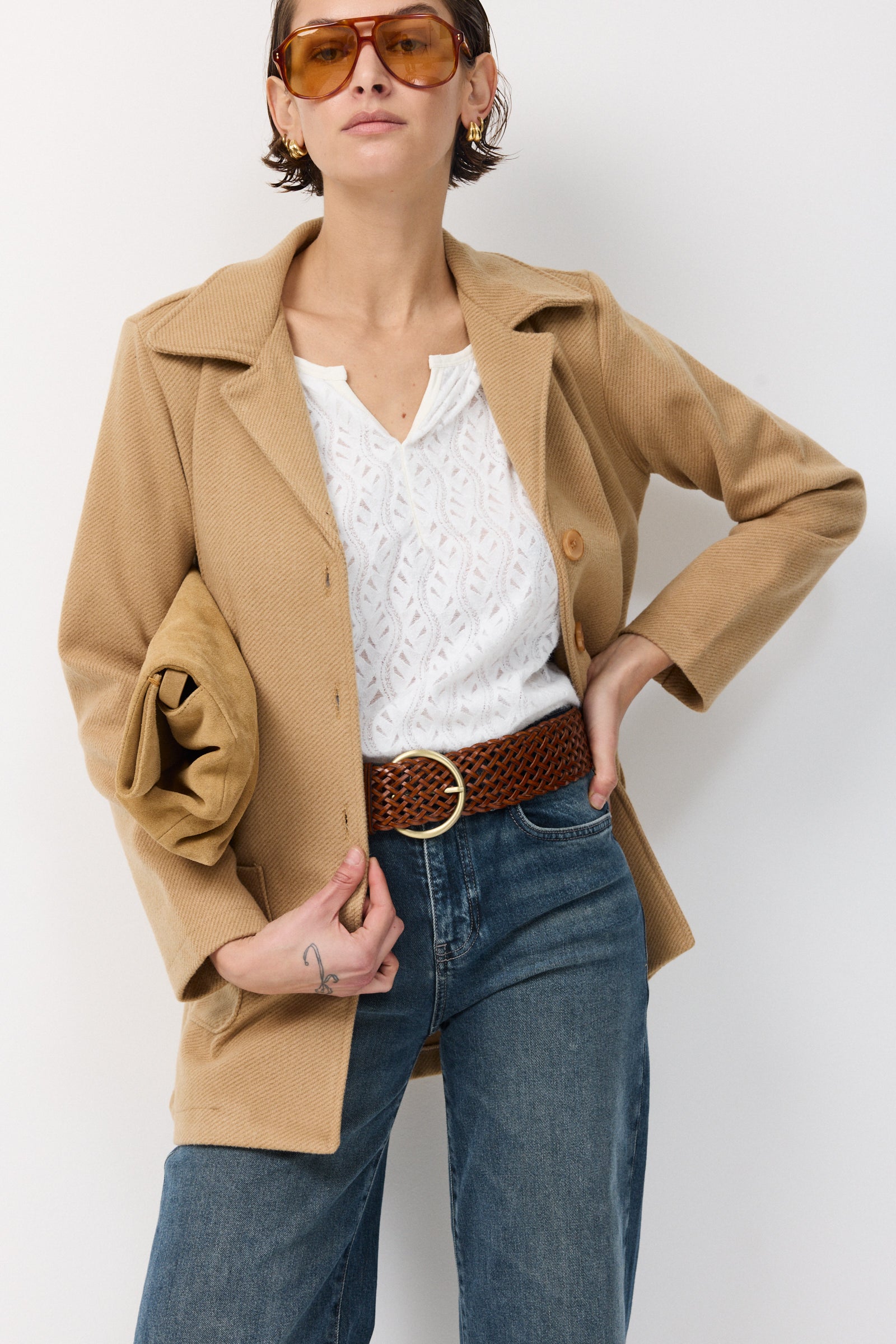 חגורת עור קלועה רחבה
