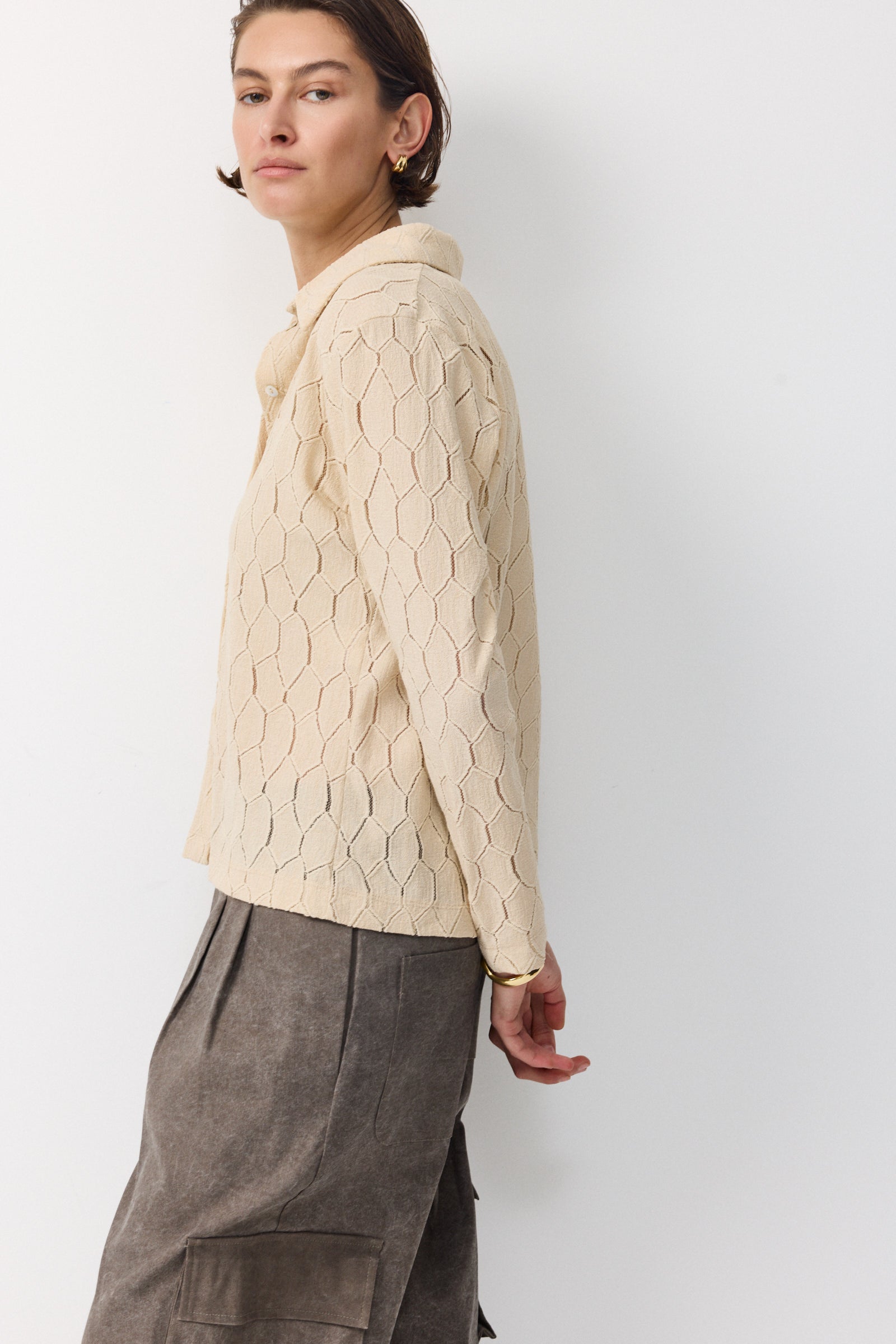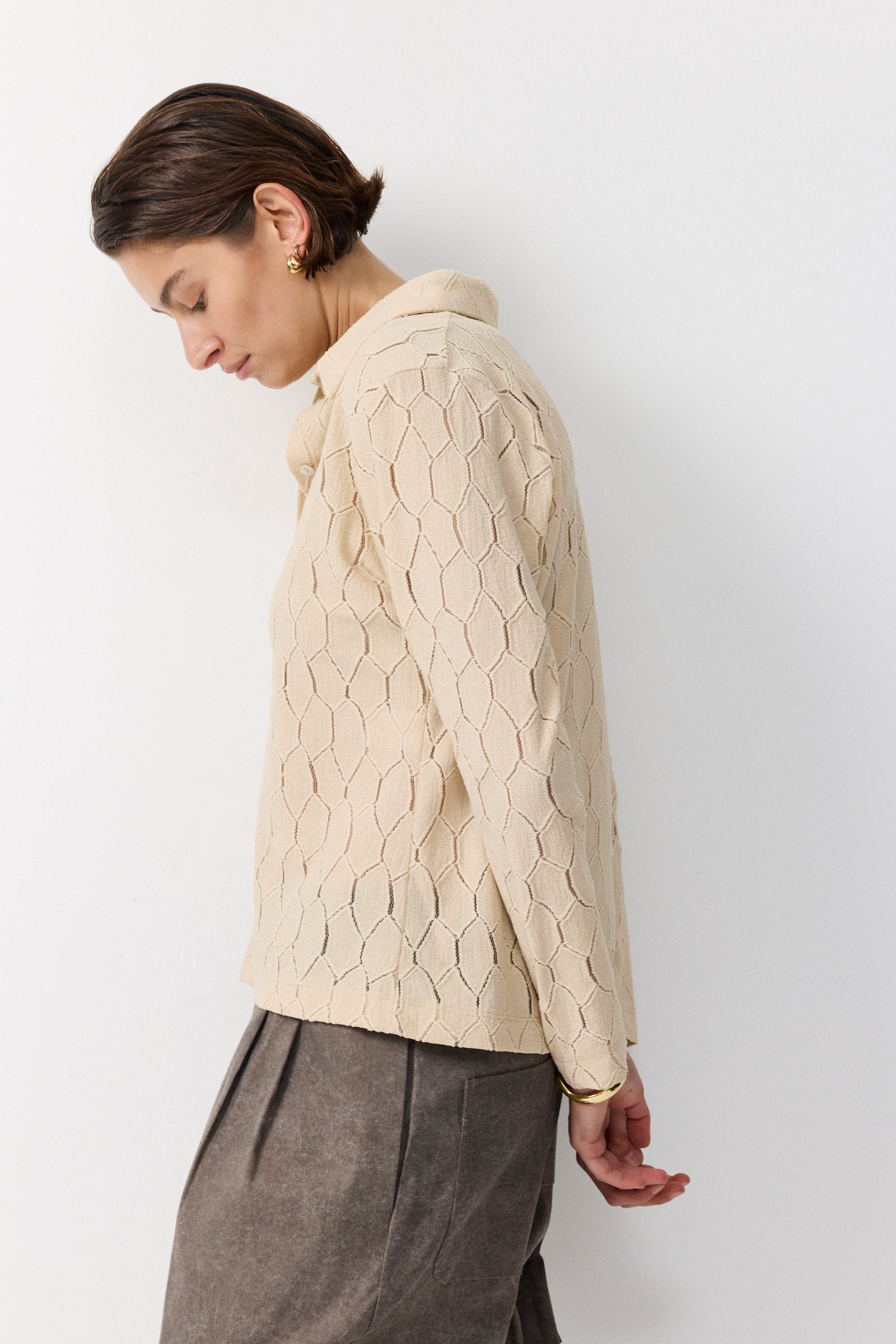 בעלת שקיפות קלה הנובעת ממבנה האריג ושרוולים ארוכים