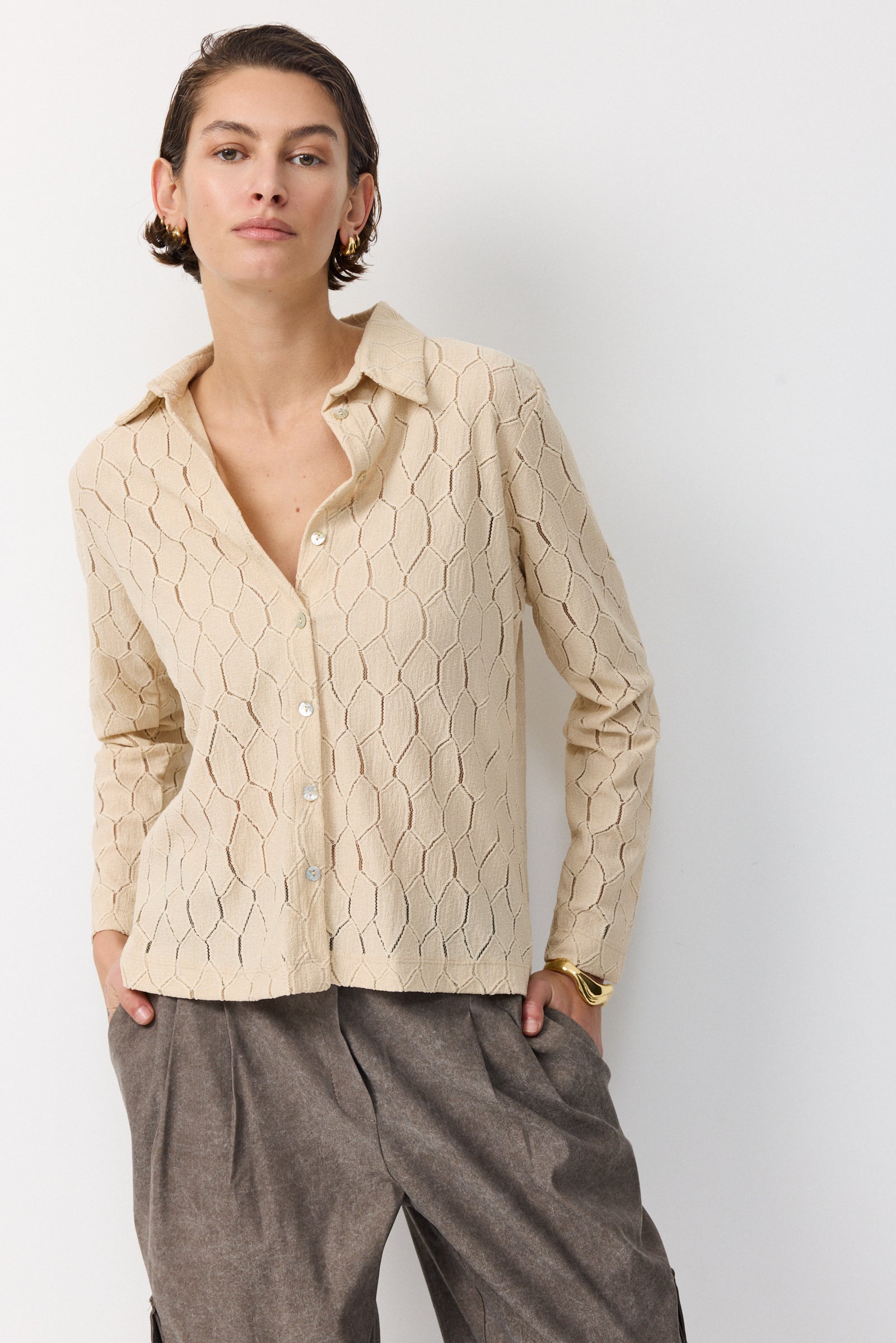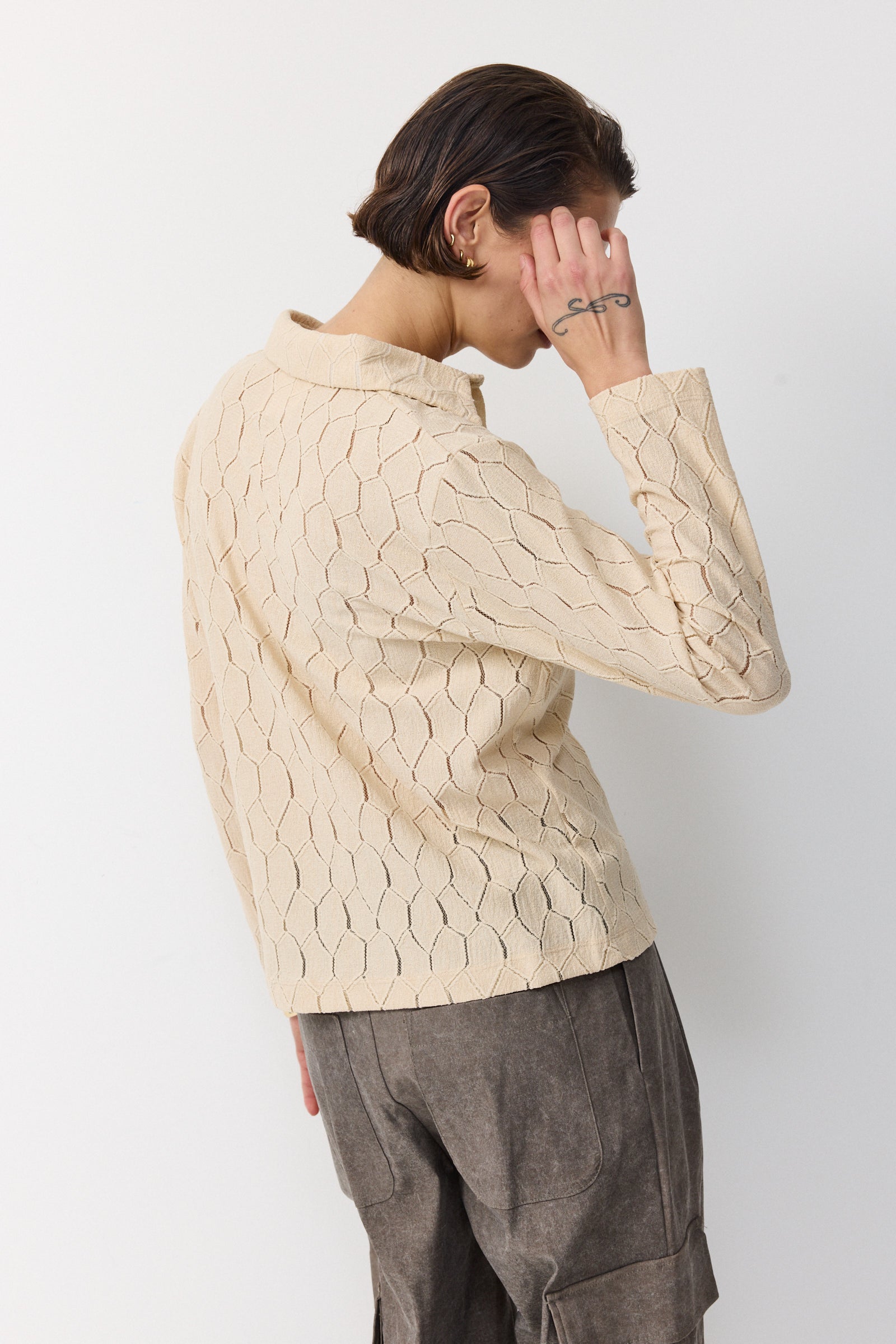 חולצת כפתרה וצווארון עשויה אריג קרושה ייחודי