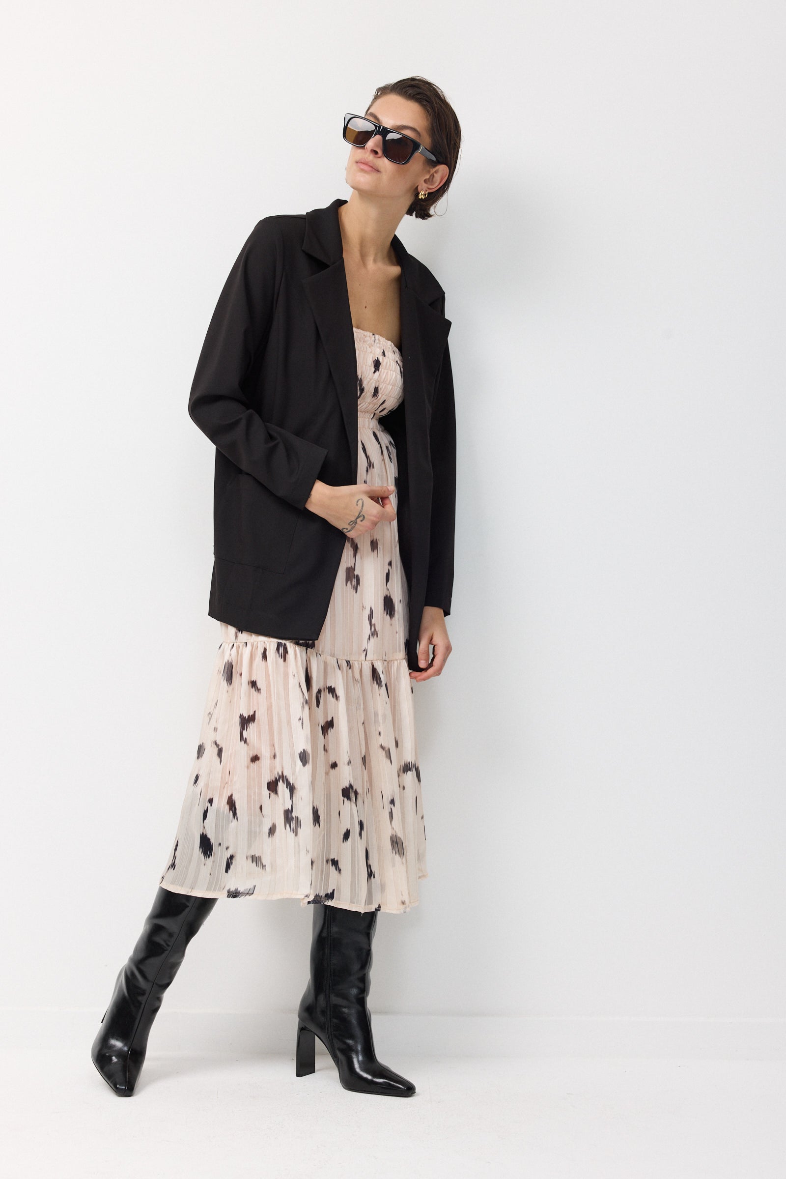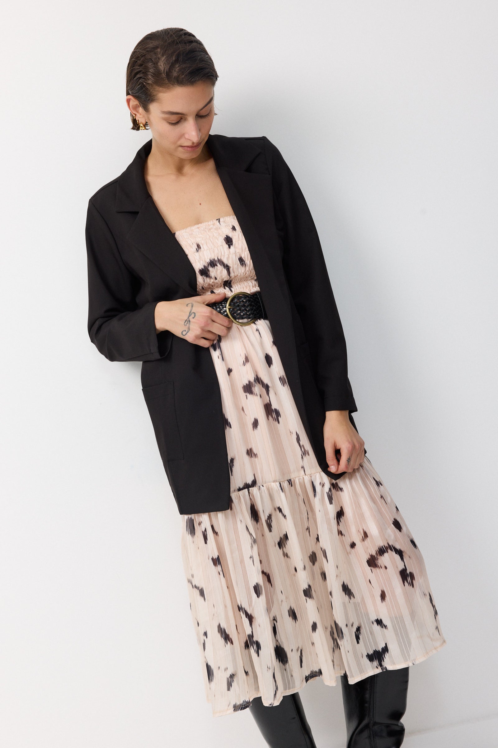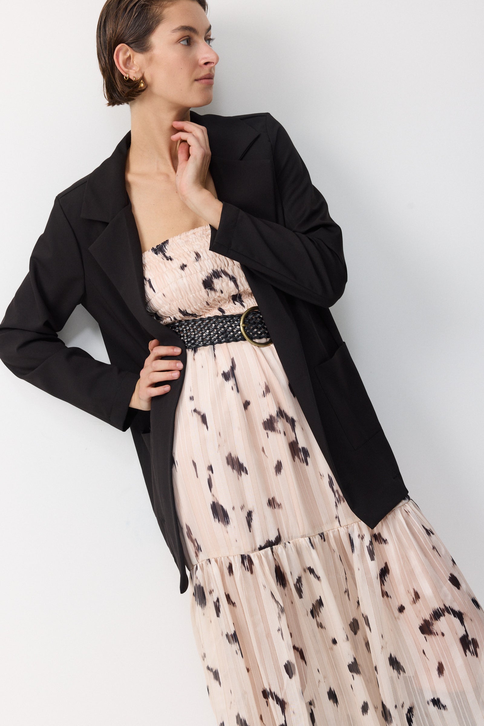 בלייזר אייקוני שנבחר לככב בצילומי הקולקציה . פריט שהוא על זמני. מתאים גם ללוק משרדי וגם לערב קל. מתקבל מושלם גם