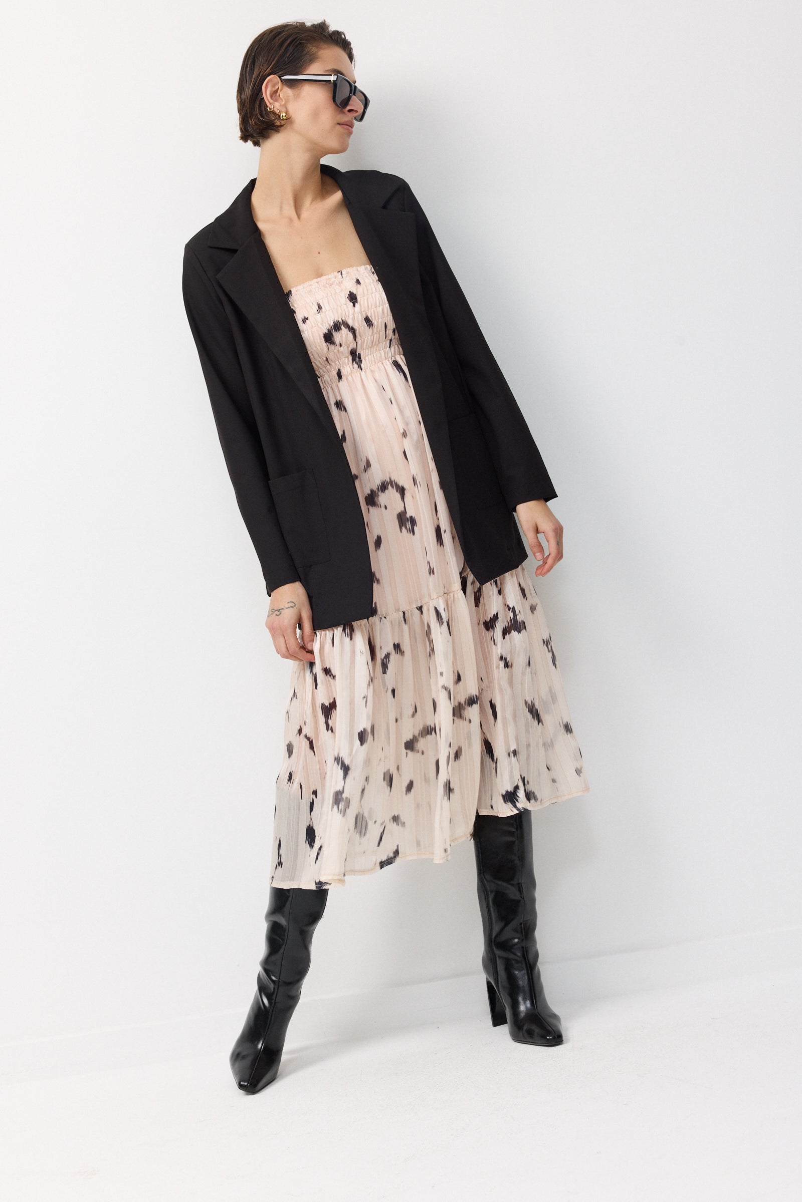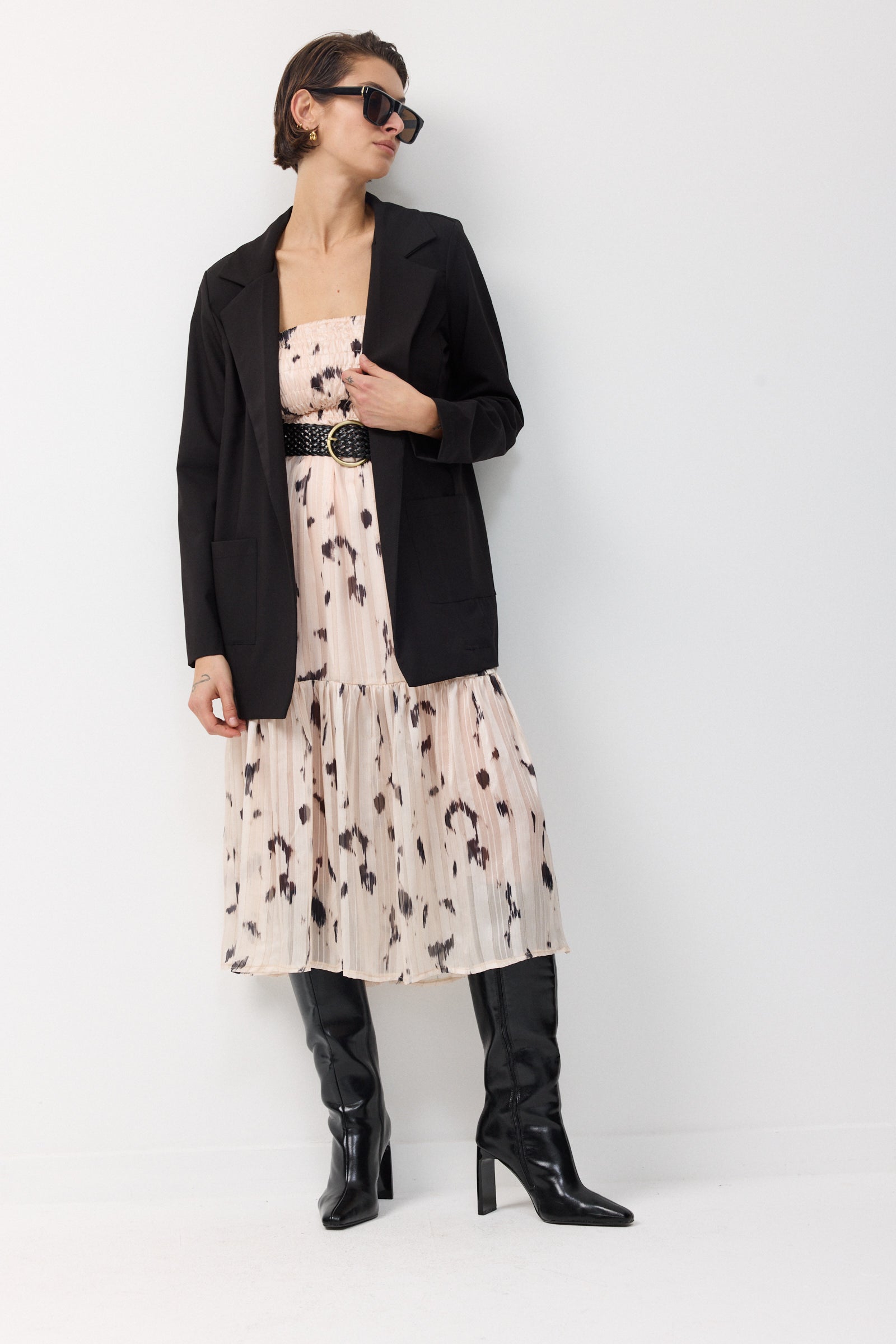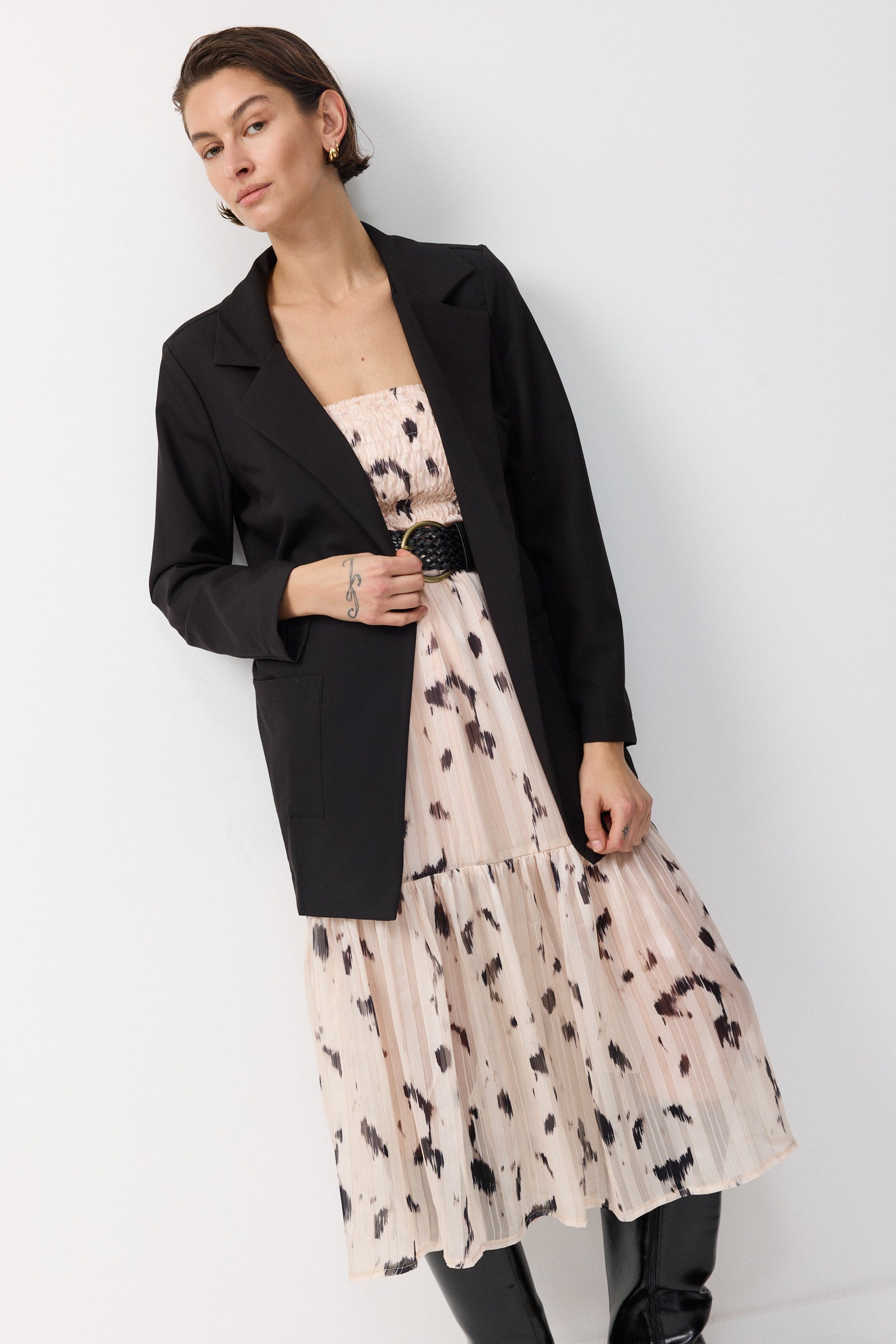 בלייזר אייקוני שנבחר לככב בצילומי הקולקציה . פריט שהוא על זמני. מתאים גם ללוק משרדי וגם לערב קל. מתקבל מושלם גם