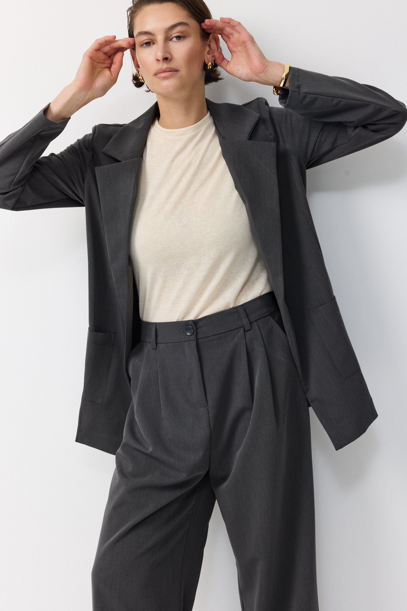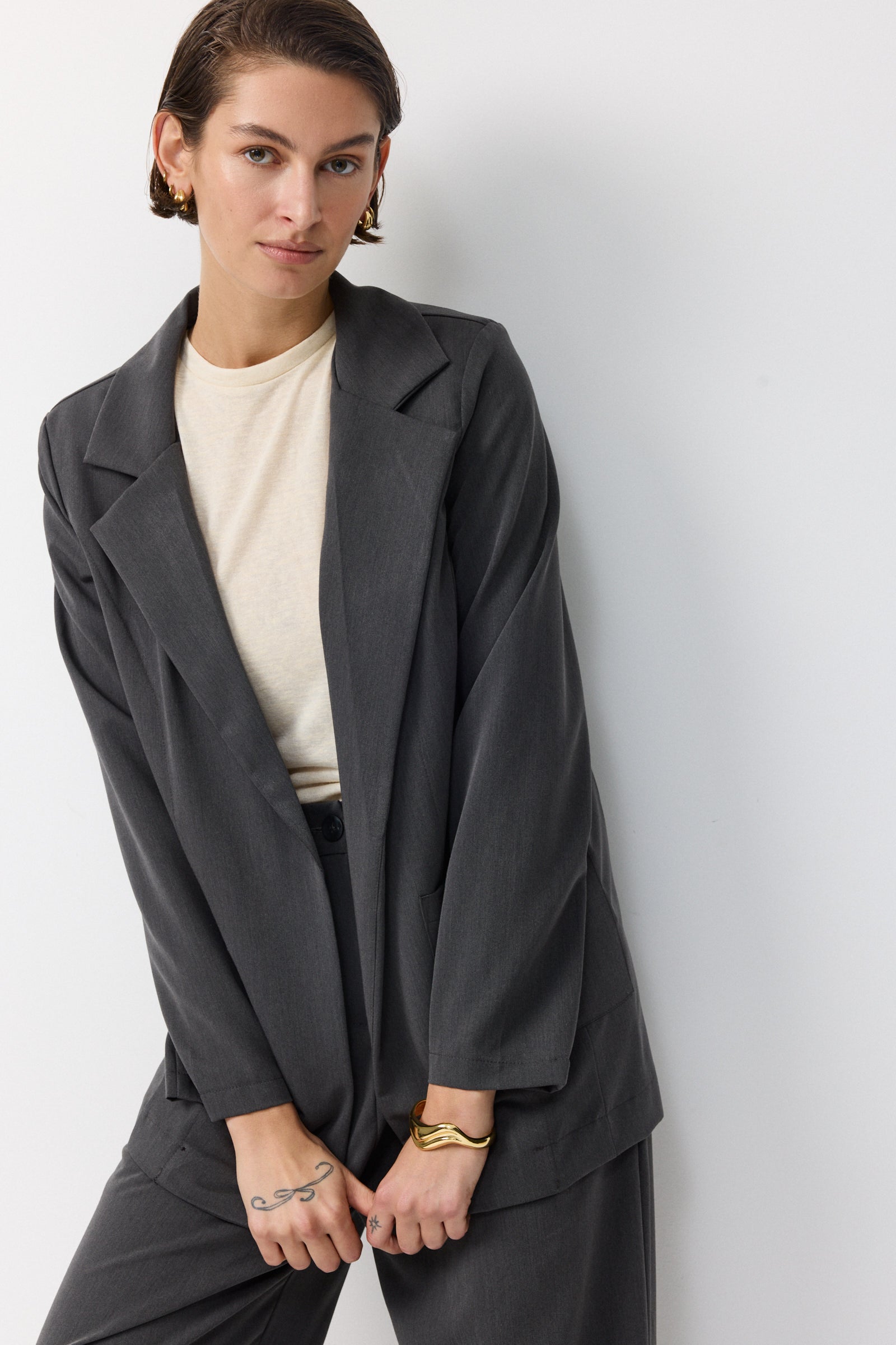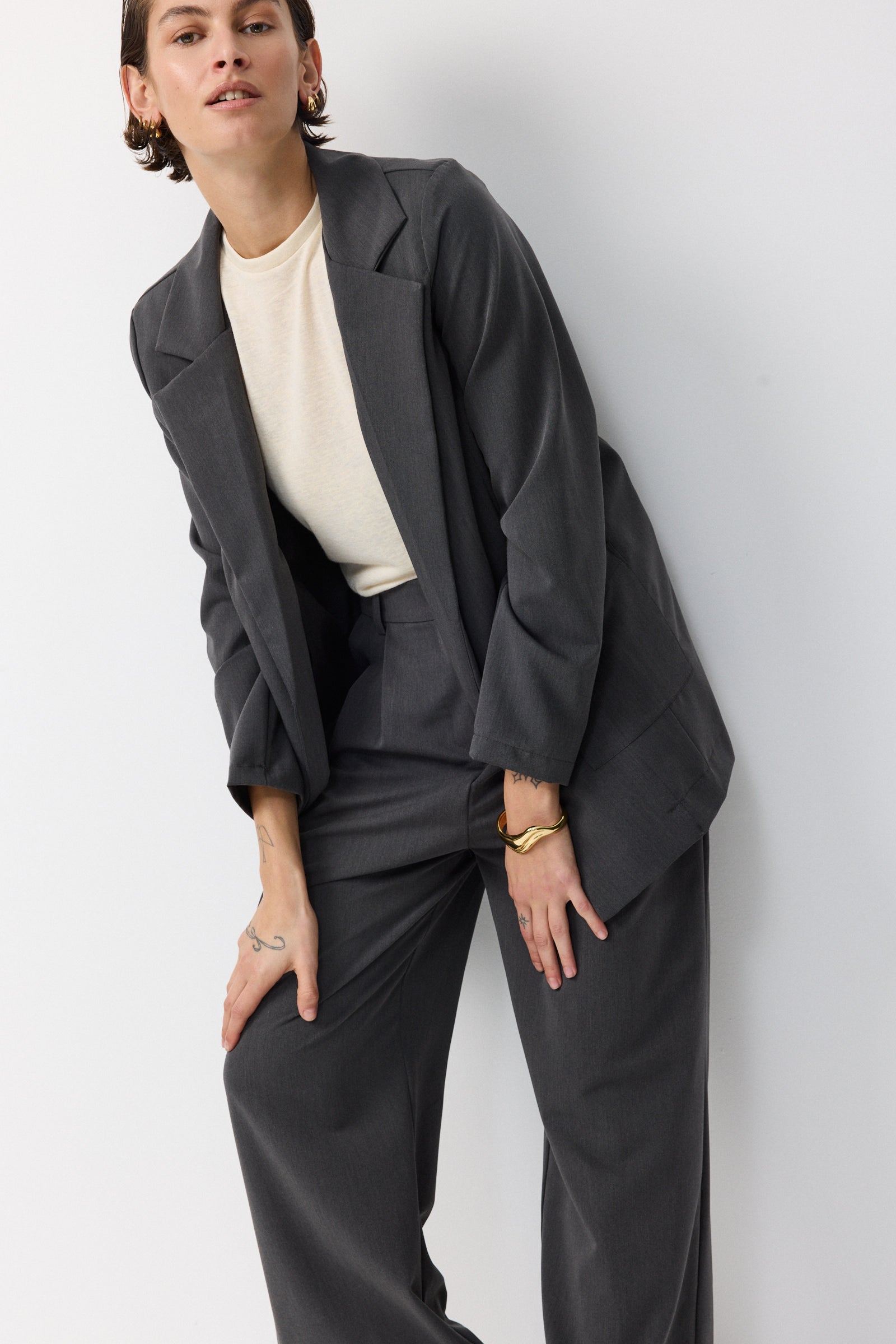 לשילוב עם מכנס החליפה התואם או כל מכנס מחויט חלק או גינס