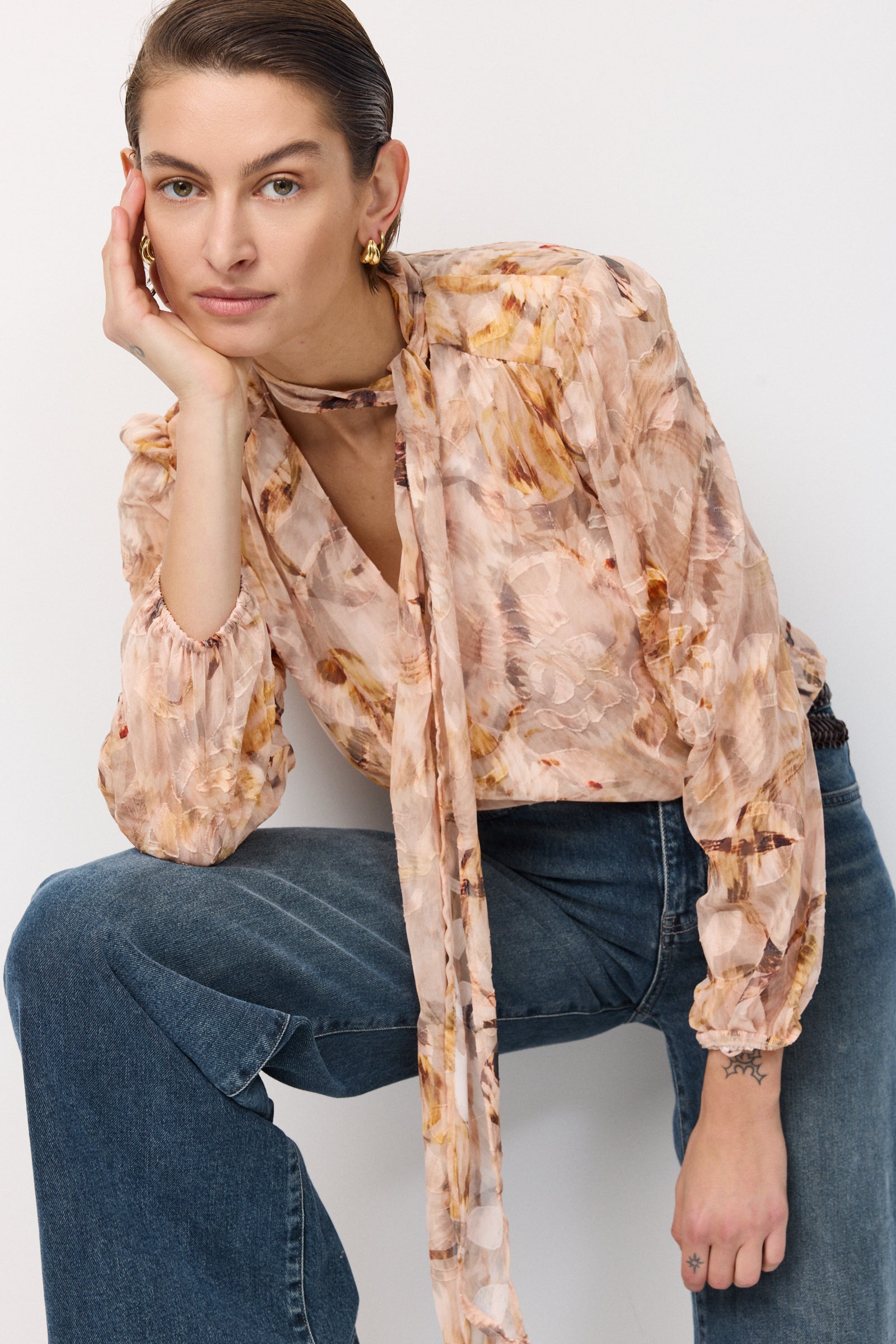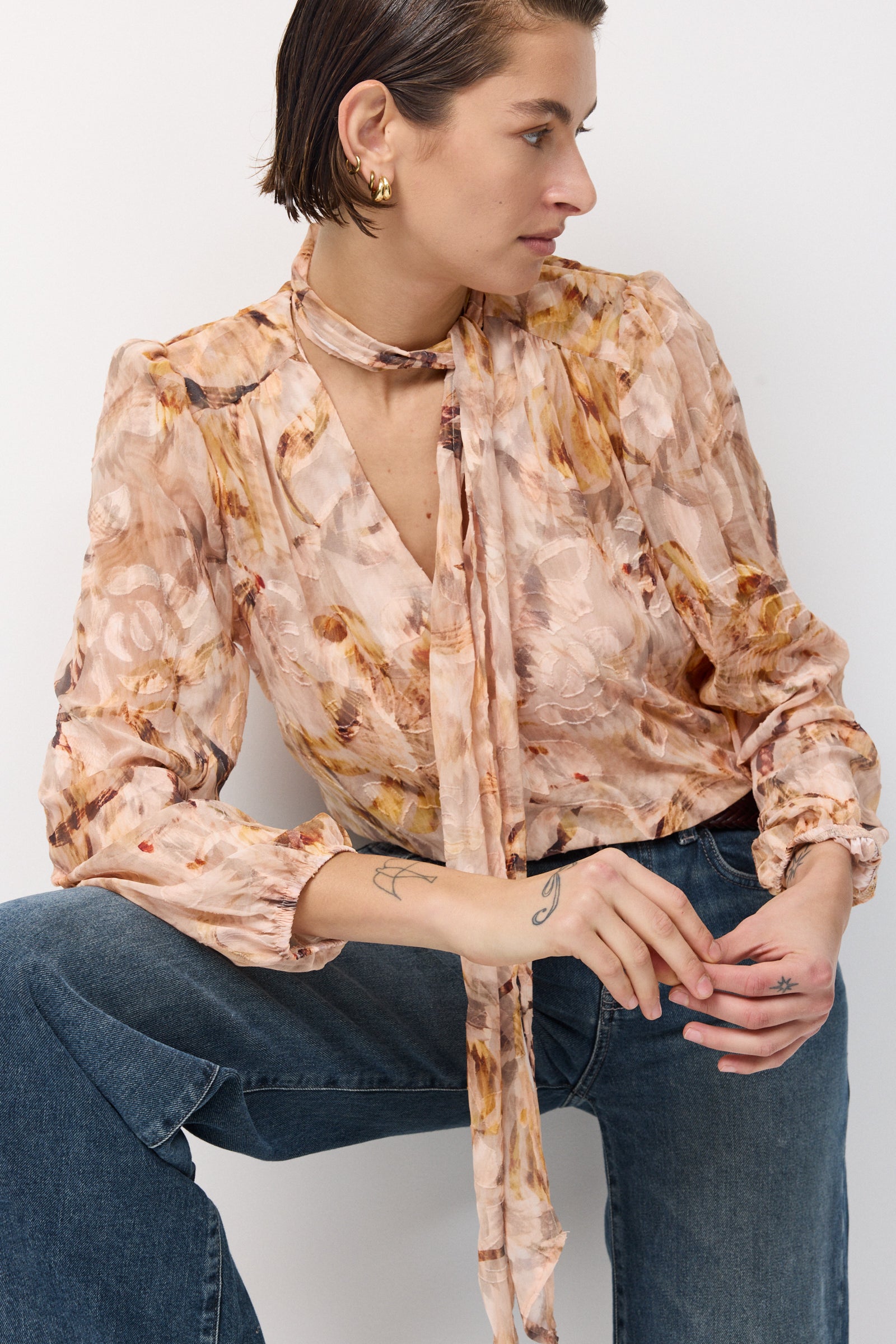 חולצת עניבה עשויה אריג שיפון ז'קארד ייחודי